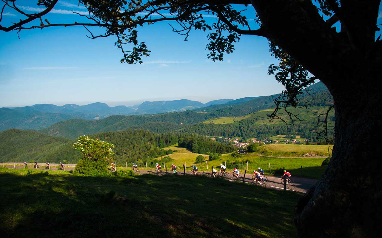 Le parcours le plus long de l’édition 2024 de L’Alsacienne est un sacré challenge : véritable succession de difficultés, il offre aussi une très grande variété des paysages au coeur du Massif des Vosges. Au départ (et à l’arrivée : c’est une boucle) du Lac de Kruth dans la vallée de Thann (68), il fait passer les cyclistes par le Col du Haag, le Petit Ballon, le Col du Bramont (liste non exhaustive, loin de là), en passant par la panoramique Route des Crêtes.