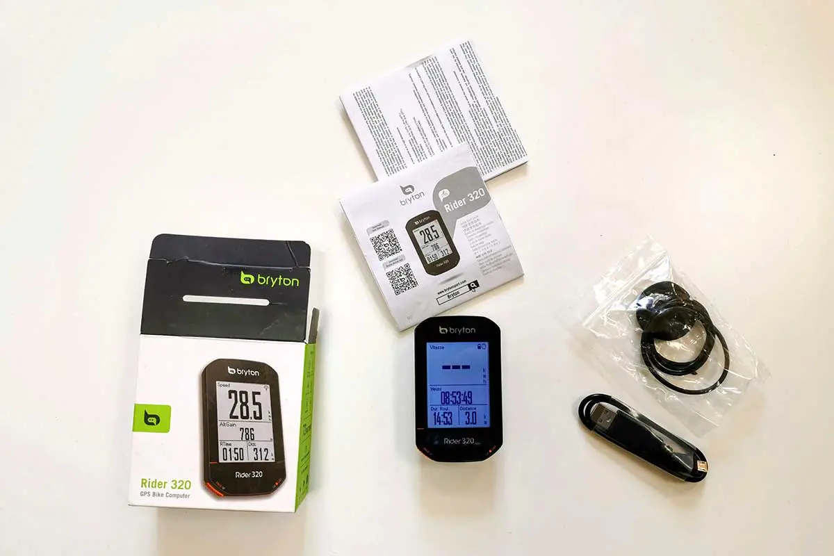 Lorsque vous ouvrez la boîte du Bryton Rider 320, vous y trouvez tout ce dont vous avez besoin pour commencer votre aventure cycliste :