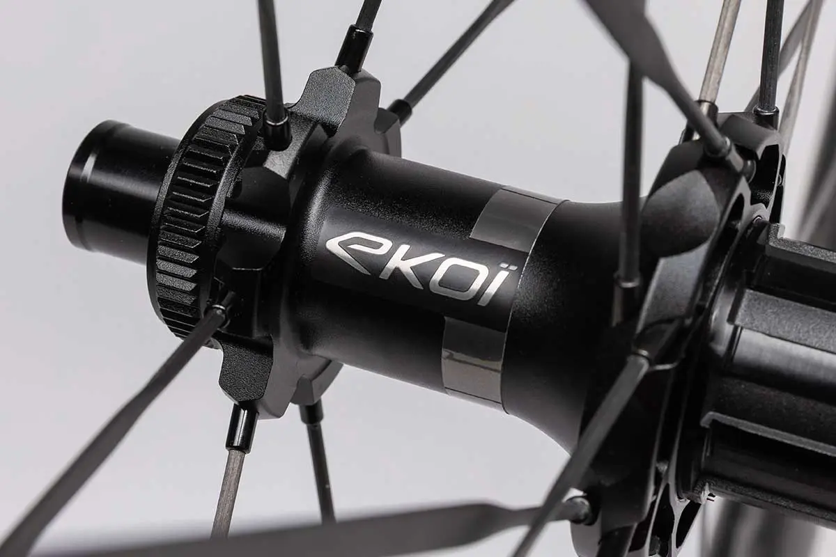 Ekoï a mis les petits plats dans les grands. Rayons en carbone Vonoa ST Super Aero, moyeux avec technologie straight pull, jantes de 50 mm optimisées pour pneus de 25 à 38 mm : tout a été conçu pour allier performance, rigidité et fluidité. Ce n’est pas un simple coup marketing, mais bien un vrai produit technique.
