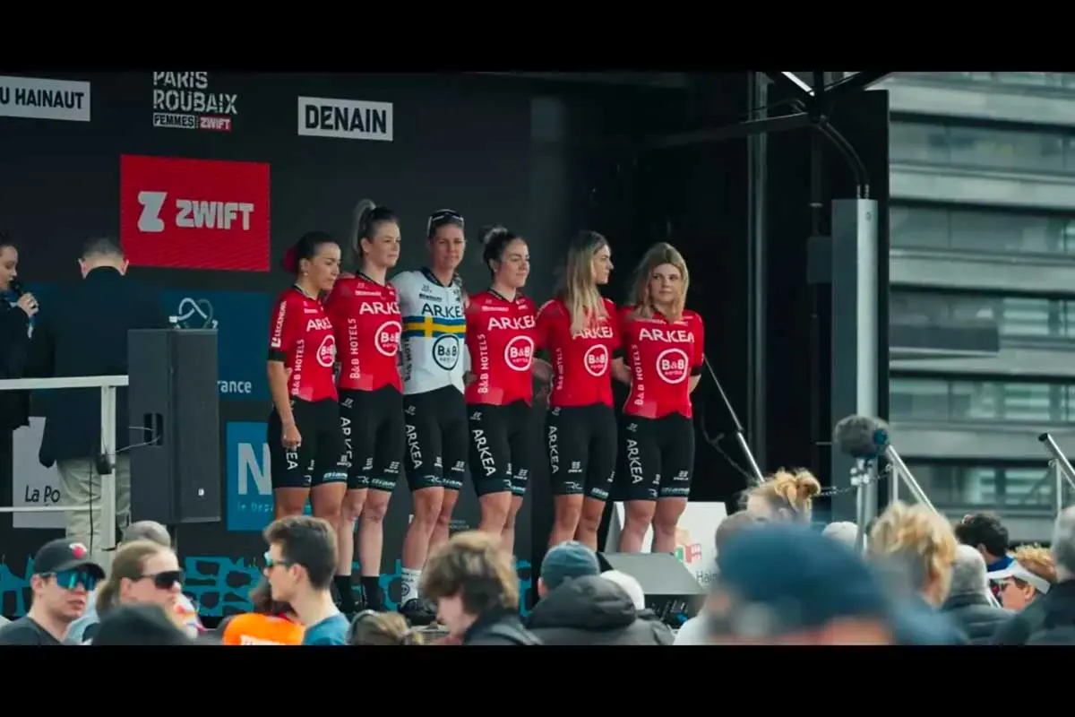 Réalisé par Sacha Vucinic, le documentaire L’Enfer du Nord nous emmène là où les caméras ne vont jamais. Dans les bus, les voitures suiveuses, les corps secoués par les pavés, les visages marqués par l’effort. L’équipe Arkéa B&B Hotels a ouvert ses portes pendant plusieurs mois pour documenter les préparations, les espoirs, les galères.