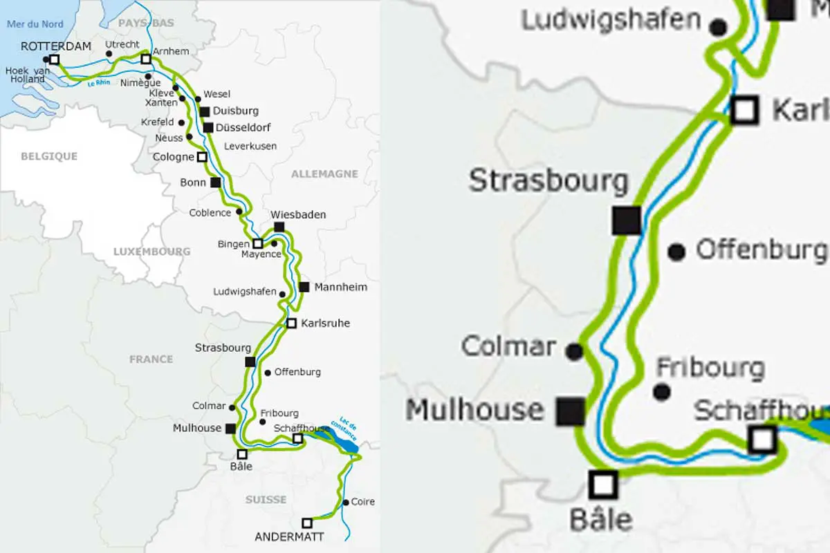 Côté français, en Alsace, la Véloroute Rhin EV 15 permet de faire la jonction entre Bâle (Suisse) et Lauterbourg (Allemagne), sur 180 km. En découvrant ainsi l’Alsace à vélo, vous en prendrez plein les yeux !