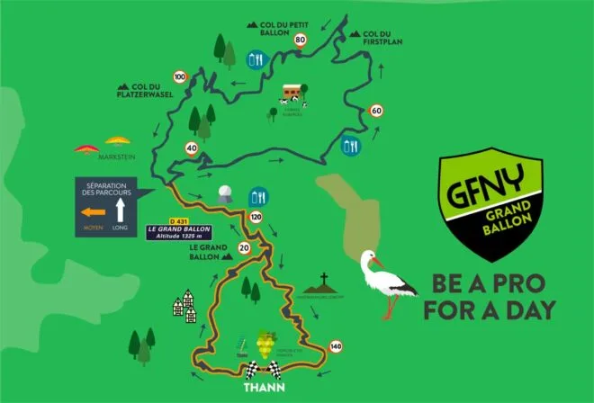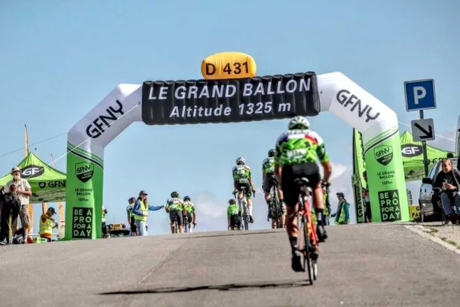 Aujourd’hui, le circuit GFNY rassemble une quarantaine de courses dans le monde. En France, on en compte sept. Et le Grand Ballon, dans les Vosges, est sans doute le plus musclé du lot. L’épreuve se déroule sous le label “Be a pro for a day” : routes fermées ou sécurisées, départ en masse, puce de chronométrage, assistance technique, maillot de course fourni (et obligatoire), médaille finisher… et un repas bien mérité à l’arrivée.