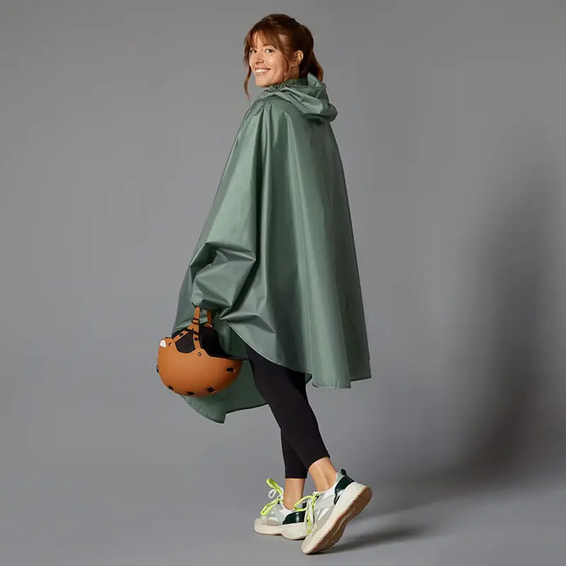 - Le Poncho vélo de Decathlon / BTWIN est léger et pratique. Il est parfait pour des pluies fines lors de vos trajets à vélo. Son design permet d’être porté par-dessus votre tenue et votre sac à dos. À noter selon votre usage : cette cape de pluie ne bénéficie pas d’éléments réfléchissants. Elle est toutefois pratique car sa coupe ample vous permet de porter ce poncho au dessus de votre veste de tous les jours ainsi que de votre sac à dos de 20 l. Il est possible également de mettre votre casque au-dessus ou en-dessous de la capuche.