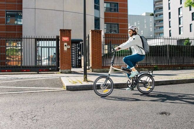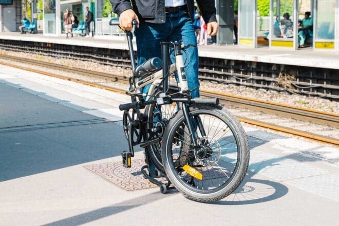 La batterie amovible de 250 Wh est dissimulée dans le cadre, à la manière d’un bidon. Elle offre une autonomie de 30 à 40 km, selon le niveau d’assistance et le type de parcours. C’est moins que les 55 km annoncés par le E Fold 900, mais largement suffisant pour des trajets urbains quotidiens. L’avantage ici, c’est le temps de recharge : 1h30 seulement. Le temps d’un déjeuner ou d’une réunion.