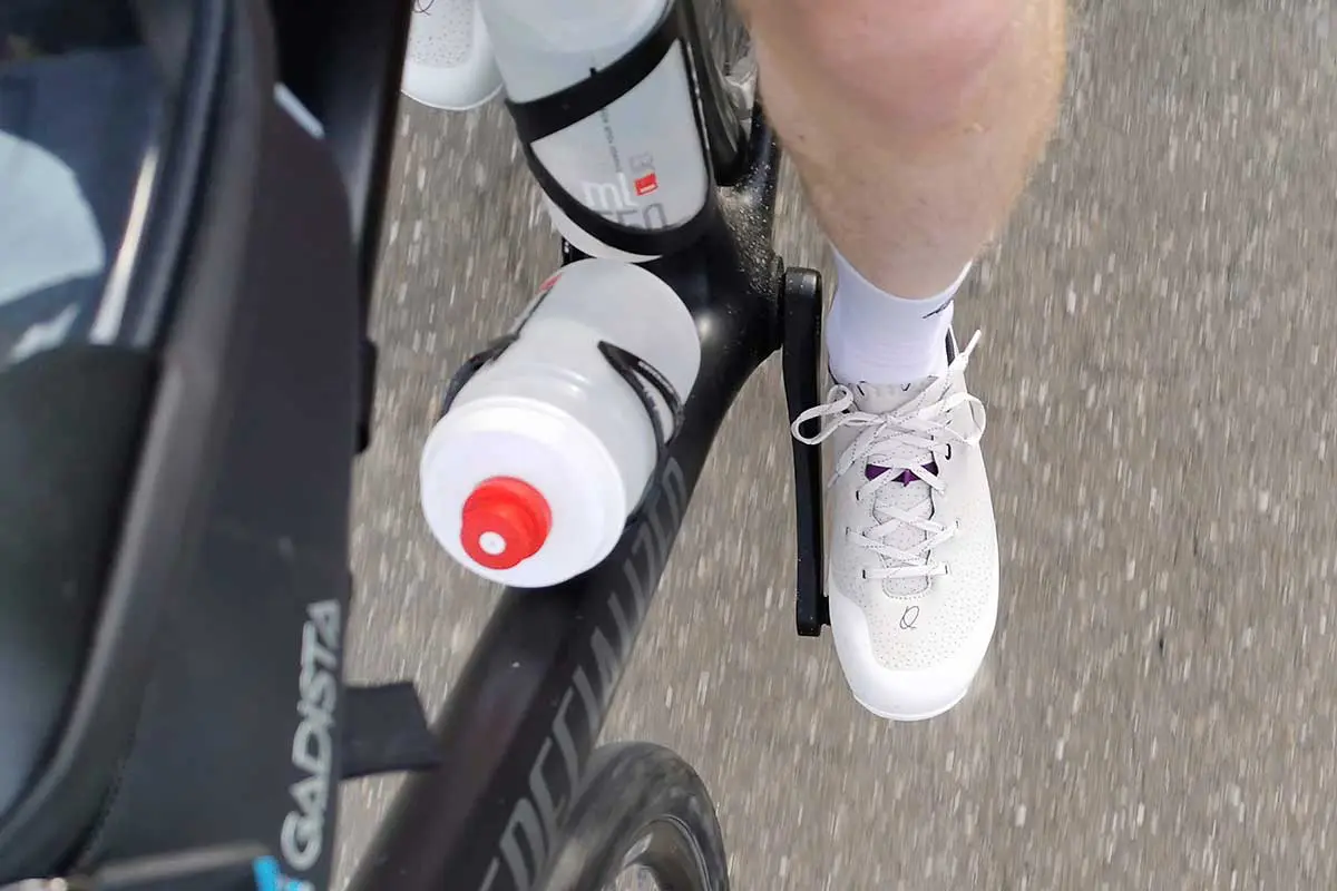 En dehors du vélo, la marche reste possible… mais avec des limites. La chaussure est rigide et on sent vite qu’elle a été pensée pour pédaler, pas pour randonner. Cela dit, pour aller chercher un sandwich au village voisin ou flâner 10 minutes sur un marché, c’est largement suffisant. Les crampons font le job sur terrain dur, même mouillé. Et malgré le look très propre de la finition Chalk, la chaussure se nettoie étonnamment bien à l’eau tiède. Mais il faudra y passer un coup de chiffon après chaque sortie si on veut préserver la beauté du blanc.