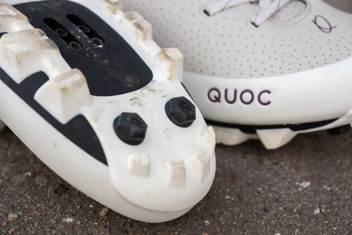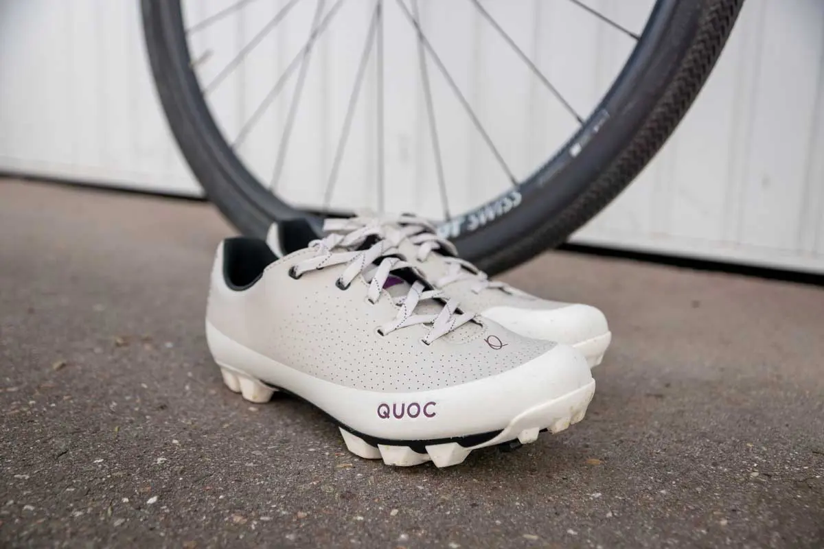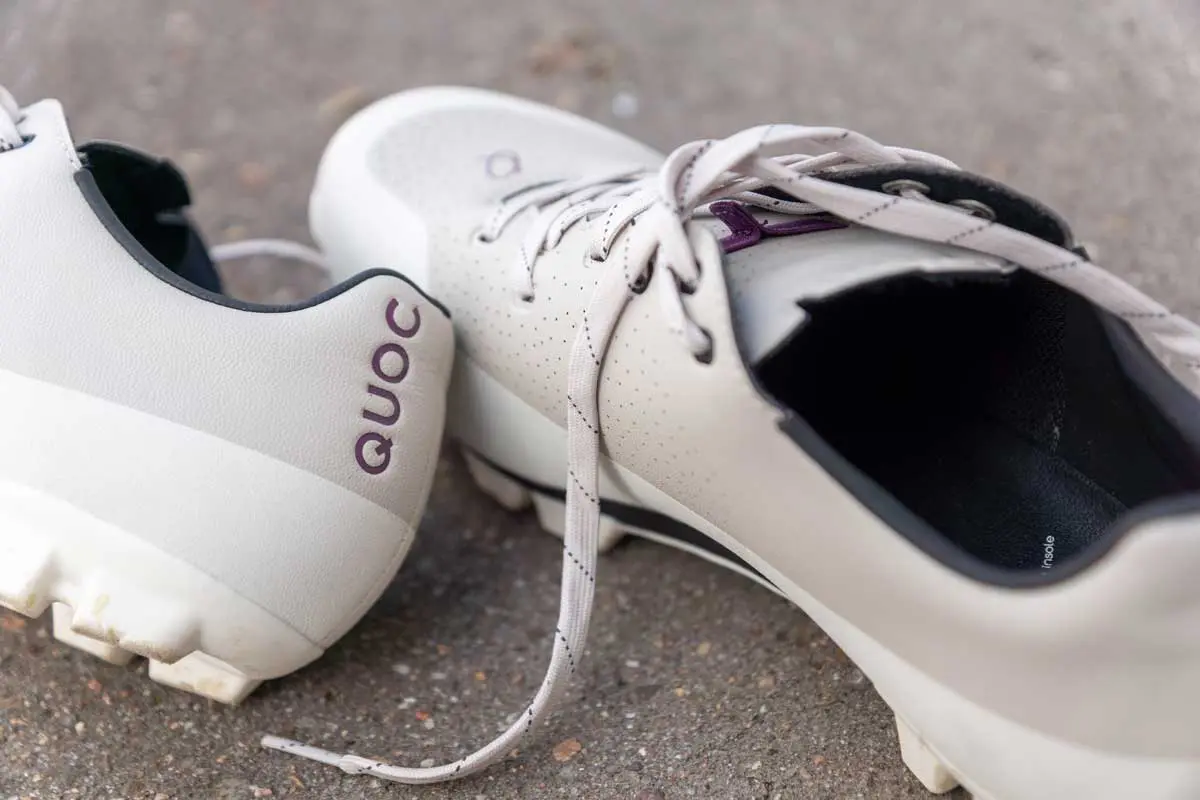 Je les avais repérées sur le stand Quoc à Eurobike. Ligne épurée, coloris sobres, finitions impeccables. Le genre de chaussures qu’on a envie d’acheter avant même de savoir si elles sont à la bonne taille. Quelques semaines plus tard, je reçois le modèle Gran Tourer XC Lace, en teinte “Chalk” – un blanc crème traversé de reflets violets. Une paire aussi belle mérite d’être malmenée. Je l’ai vissée, serrée, roulée, marché. Voici ce que j’en pense.