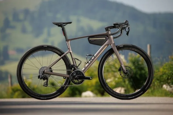 Sur route, les premiers tests réalisés par nos confrères allemands de Rennrad News le confirment : la déformation verticale est réelle, mais bien ciblée. Le cadre reste rigide au niveau du boîtier de pédalier et de la douille de direction. Les relances sont franches, le vélo ne « pompe » pas, et les descentes techniques se passent avec assurance.
