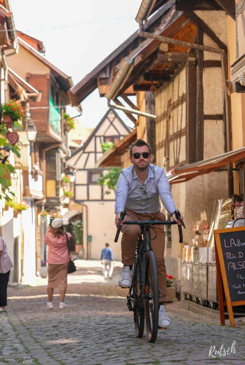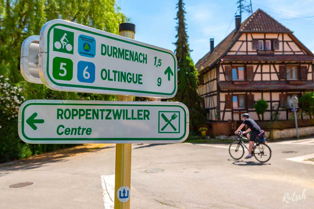 L’Alsace est une région attractive pour les amateurs de vélo : en tête de liste, elle possède le plus grand nombre de véloroutes longue distance européennes EuroVélo (l’EuroVélo 5, l’EuroVélo 6 et l’EuroVélo 15) et s’affirme comme la région française la plus cyclable avec 2 500 km d’itinéraires cyclables. « C’est simple, tu suis les symboles depuis la gare et tu es guidé. », s’enthousiasme Greg.