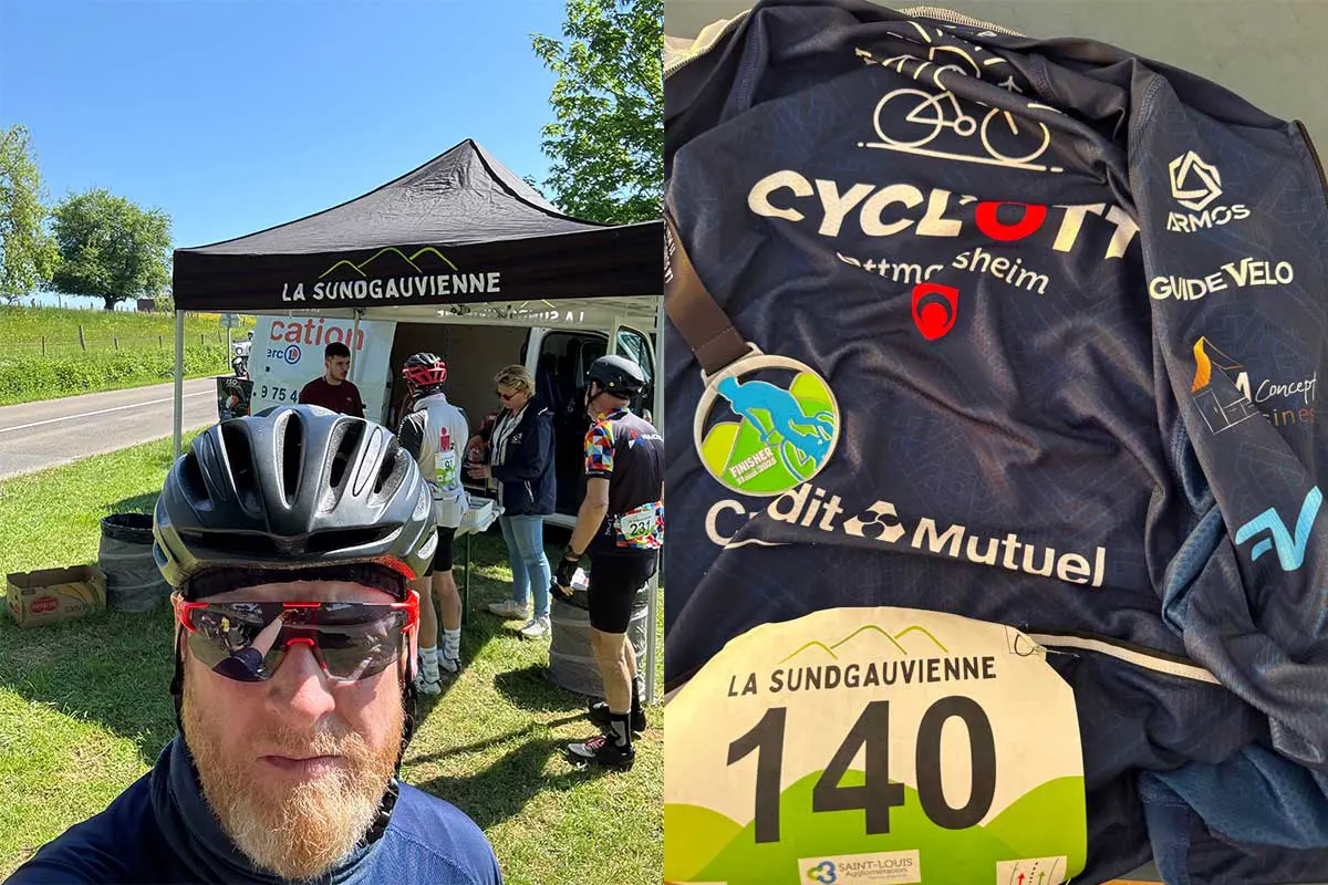 Au final, je boucle en un peu plus de six heures. Loin des meilleurs, qui passent sous les 3h30, mais ce n’était pas l’objectif. Je voulais me préparer et me tester pour l’Alsacienne en juin. De ce point de vue, la Sundgauvienne remplit parfaitement son rôle. C’est exigeant, mais sans excès. On en ressort vidé, mais content d’avoir roulé. A refaire en 2026 !