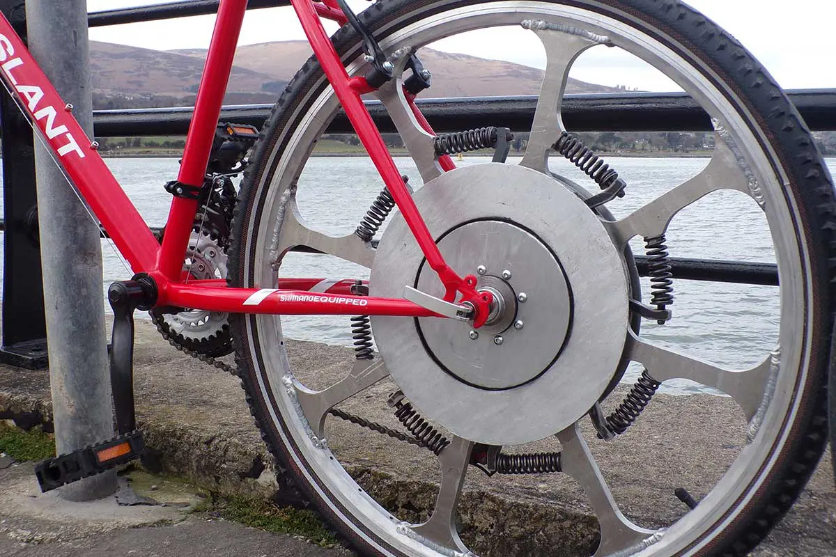 La SuperWheel est l’œuvre de Simon Chan, un inventeur irlandais. Sa technologie brevetée, appelée WTECT (Weight to Energy Conversion Technology), convertit une partie du poids du cycliste en énergie pour aider la roue à tourner. Grâce à un mécanisme complexe composé de ressorts, la compression et la décompression de ces derniers sont transformées en mouvement vers l’avant. Le résultat ? Un vélo qui garde les sensations d’un vélo « musculaire », mais en plus facile et rapide, comme si vous aviez constamment le vent dans le dos. Une bonne façon aussi de faire de l’effort sans se trop se fatiguer.