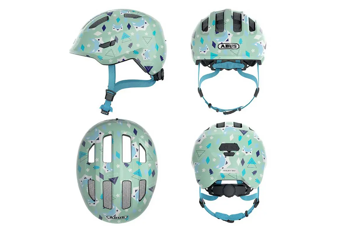 Dès la sortie de la boîte, le Abus Smiley 3.0 inspire confiance. Le casque est léger, bien fini, avec une coque solide qui inspire confiance. J’aime aussi beaucoup le design qui change des éternels casques flashy ou des Pat Patrouille. Le modèle que nous avons choisi, Green Nordic, arbore un joli vert pastel orné de petits renards et sapins stylisés façon origami. C’est à la fois sobre et ludique, parfait pour un usage quotidien sans ressembler à un déguisement.