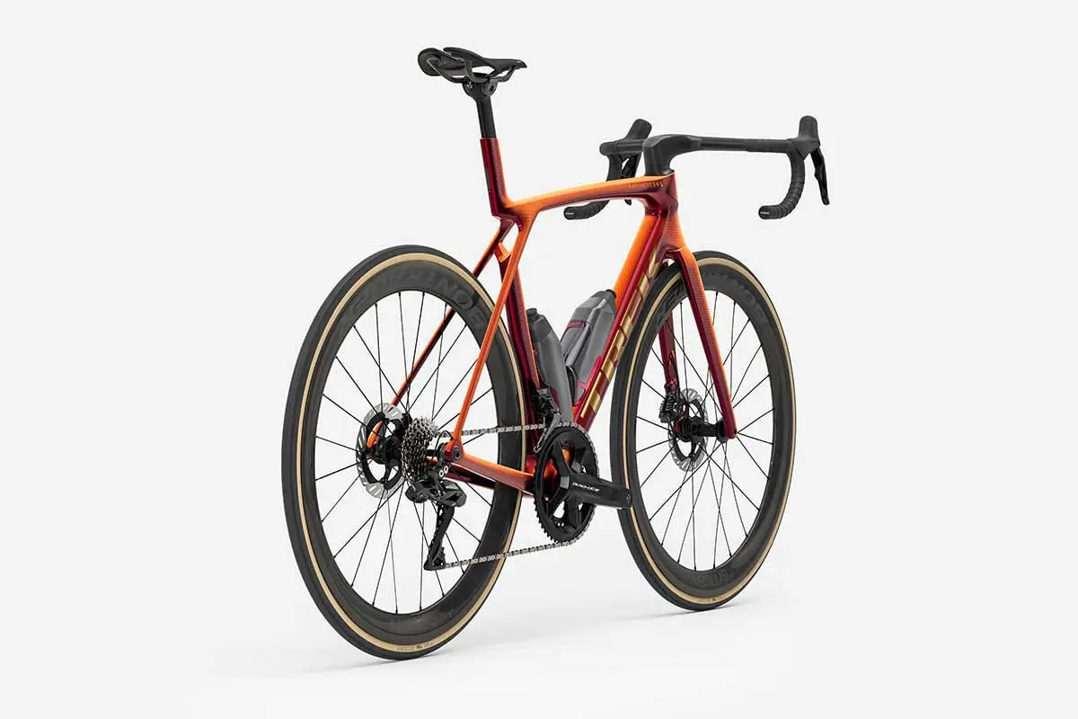 Le choix du Madone génération 8 n’est pas anodin. Ce nouveau modèle fusionne les qualités de l’ancien Madone (profil aérodynamique) et de l’Émonda (cadre ultra léger). Résultat : un vélo ultra léger (7,3 kg), sans compromis, aussi rapide en plaine qu’efficace en montagne. Mais attention : dans Project One, seuls les Madone SLR sont configurables, pas les versions SL.