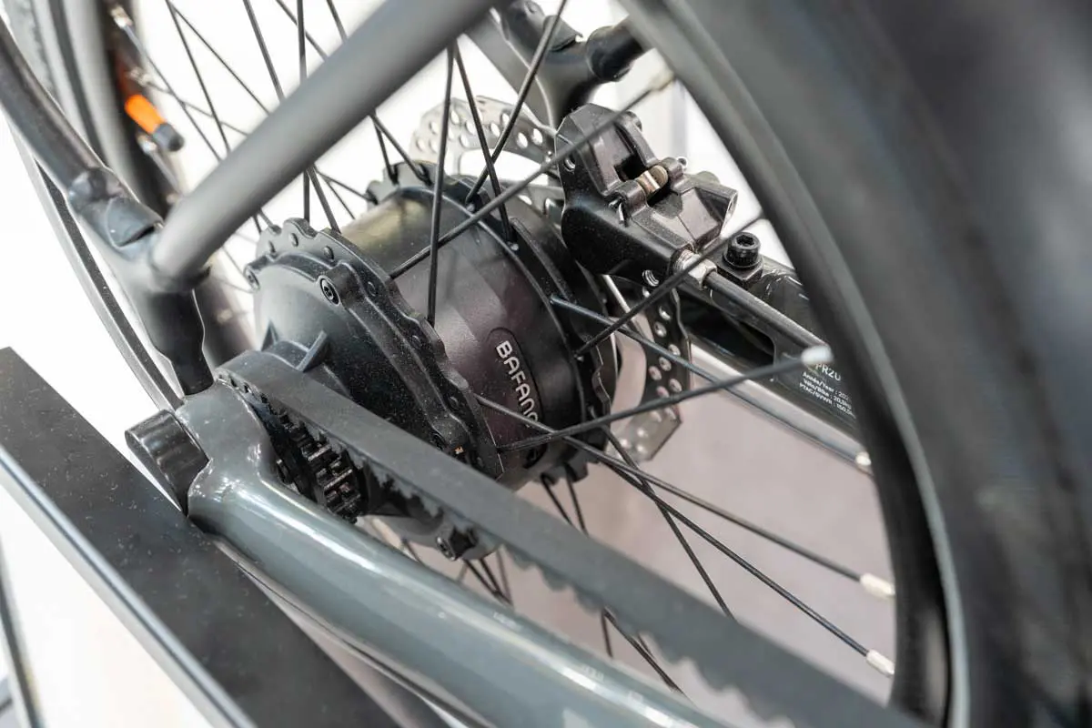 Côté équipement, le PRO20 affiche un niveau de finition rare pour un vélo pliant. Transmission par courroie Gates, freins à disque hydrauliques Shimano MT200, pneus Schwalbe Big Apple, moteur Bafang Dual Speed de 250 W et batterie Samsung de 352,8 Wh intégrée dans la tige de selle. Le tout dans un format plié de 86 x 69,5 x 46 cm pour un poids de 20,6 kg. L’autonomie annoncée atteint 70 km. À 2 999 €, ce n’est pas le plus abordable, mais il se positionne clairement comme un haut de gamme urbain compact.