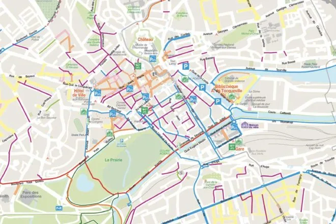 Aperçu du réseau de pistes cyclables à Caen