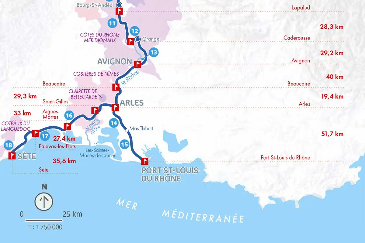 - Viviers / Bourg-Saint-Andéol à Lapalud – 32,32 km